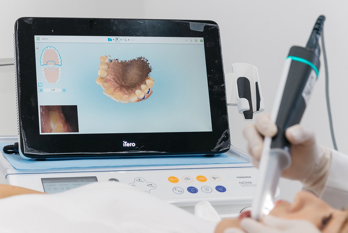お口の中をスキャンすることで、従来の型取りが不要に。マウスピース矯正などの精密な治療にも対応します。