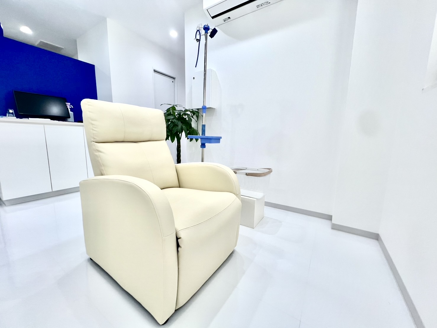 リクライニングチェアを備えた静かな空間で、点滴療法を行います。